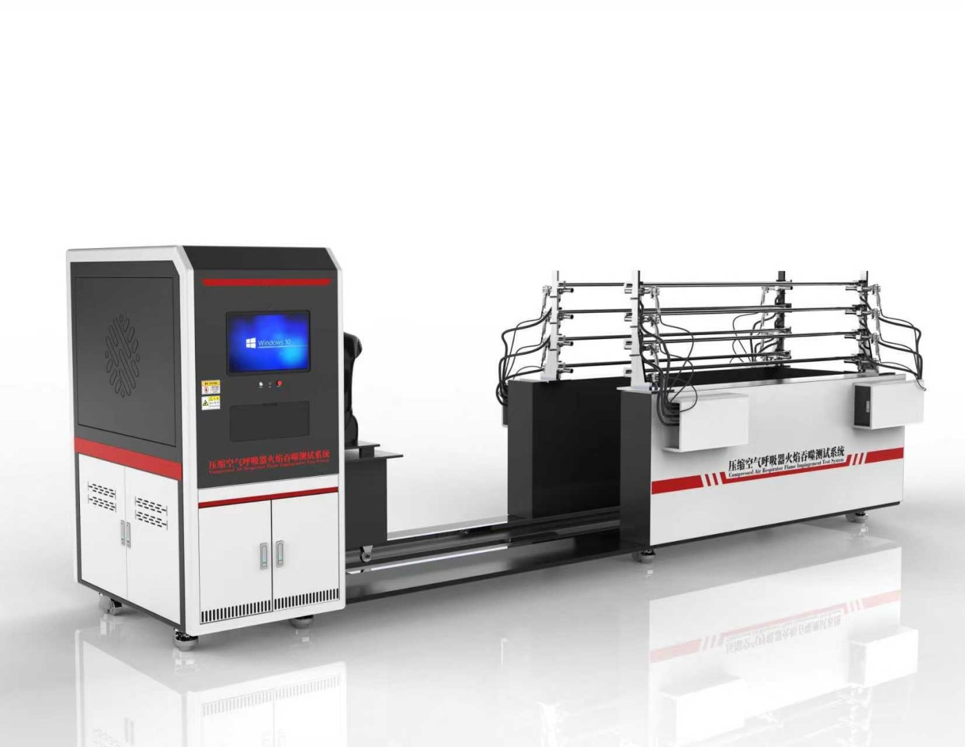 系統通過精密控制火焰噴射、溫度、時間等參數,模擬真實火場環境,對呼吸器進行抗火焰吞噬性能測試。具體流程如下: